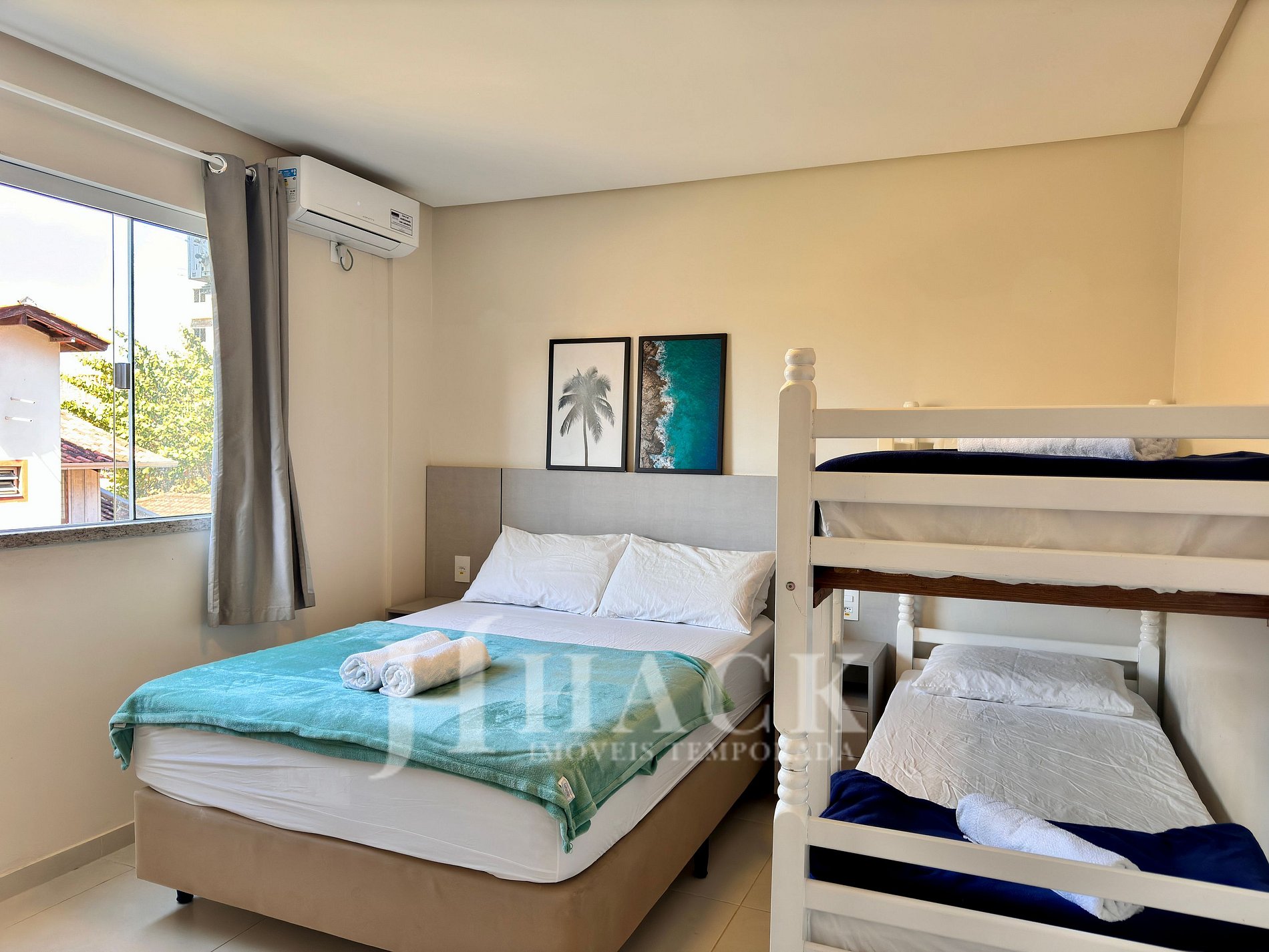 ◘ En el dormitorio encontrará aire acondicionado split, camas de alta calidad, armario y plancha, además de una almohada para cada huésped. Los colchones y almohadas tienen protectores que se cambian con cada nueva estadía.