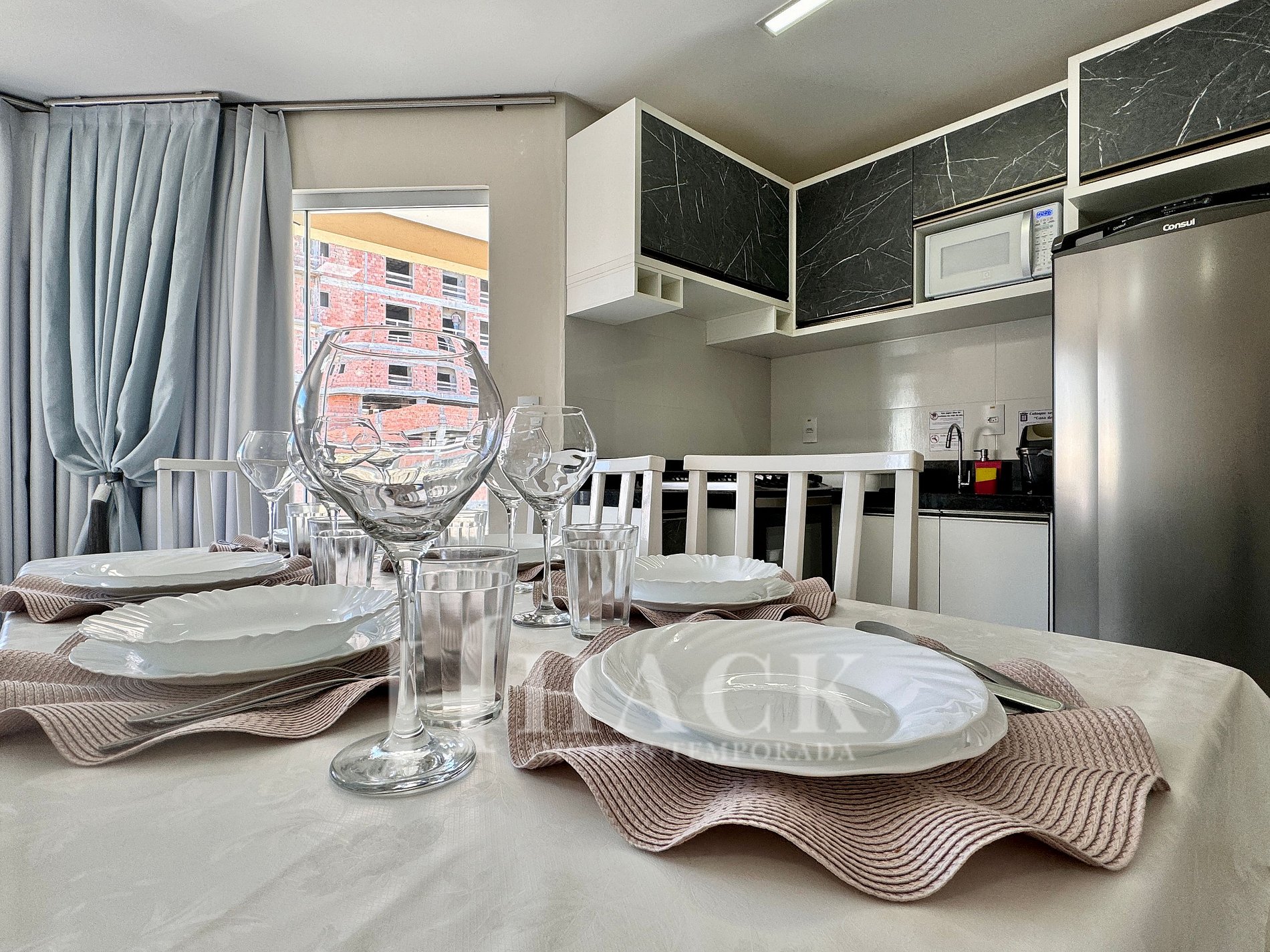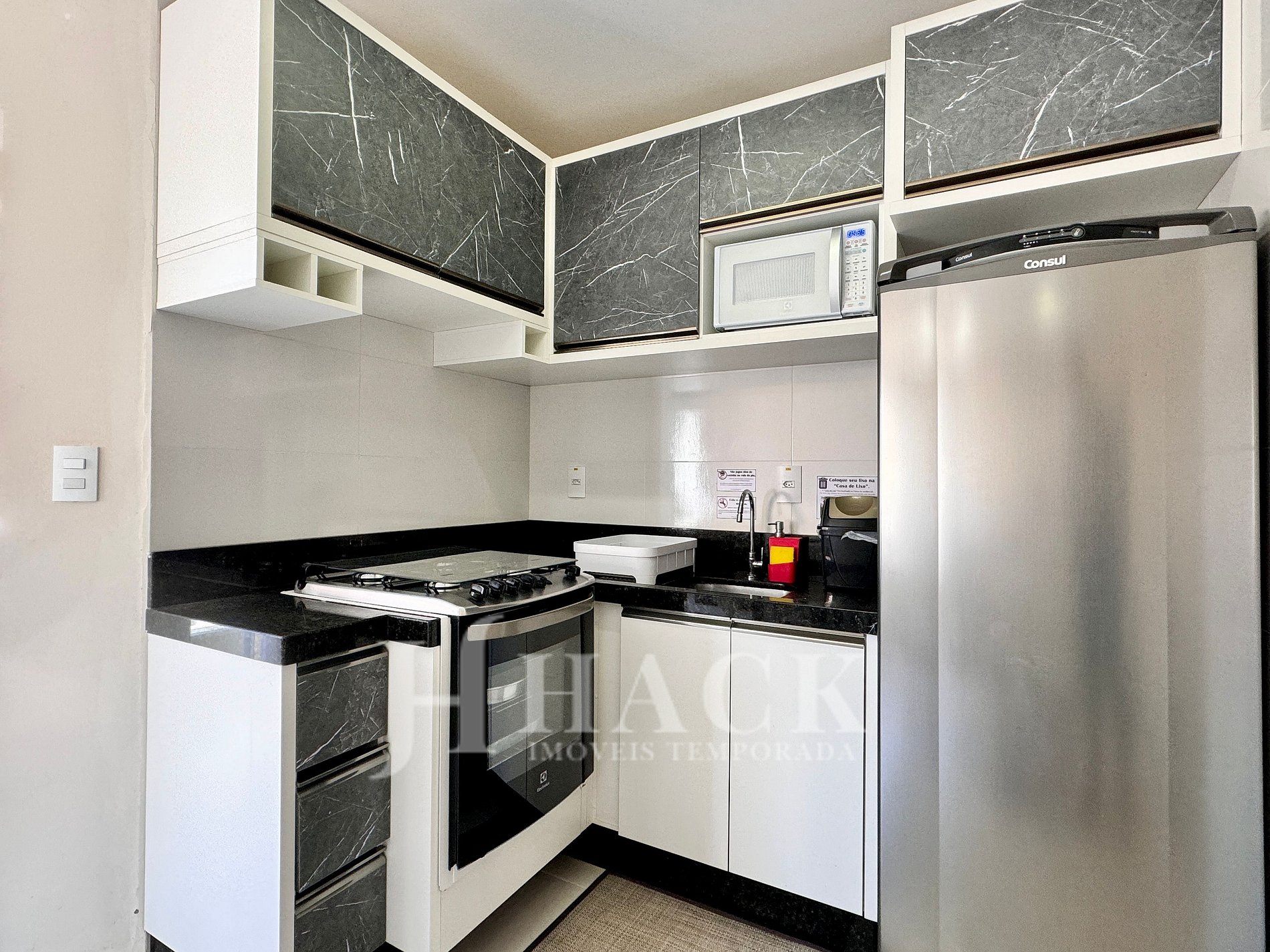 ◘ La cocina está completamente equipada con todos los utensilios para que pueda preparar sus comidas como si estuviera en casa. Cuenta con cocina a gas, armario, nevera, microondas, licuadora, vajilla, cubiertos y ollas. Proporcionamos detergente, esponja, paño perfex y trapo de cocina para los primeros días.