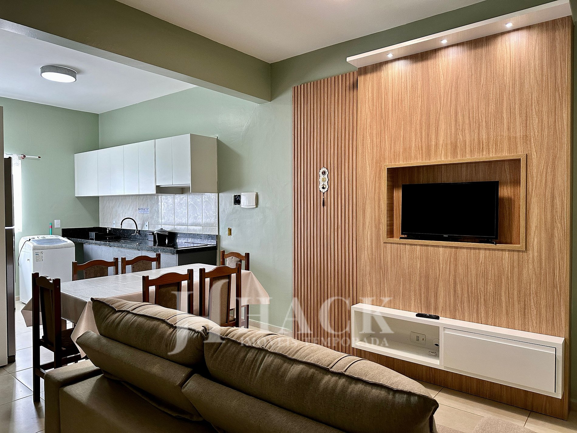 ◘ Sala acogedora con Smart TV de 32", ideal para relajarse y disfrutar de tus programas favoritos.