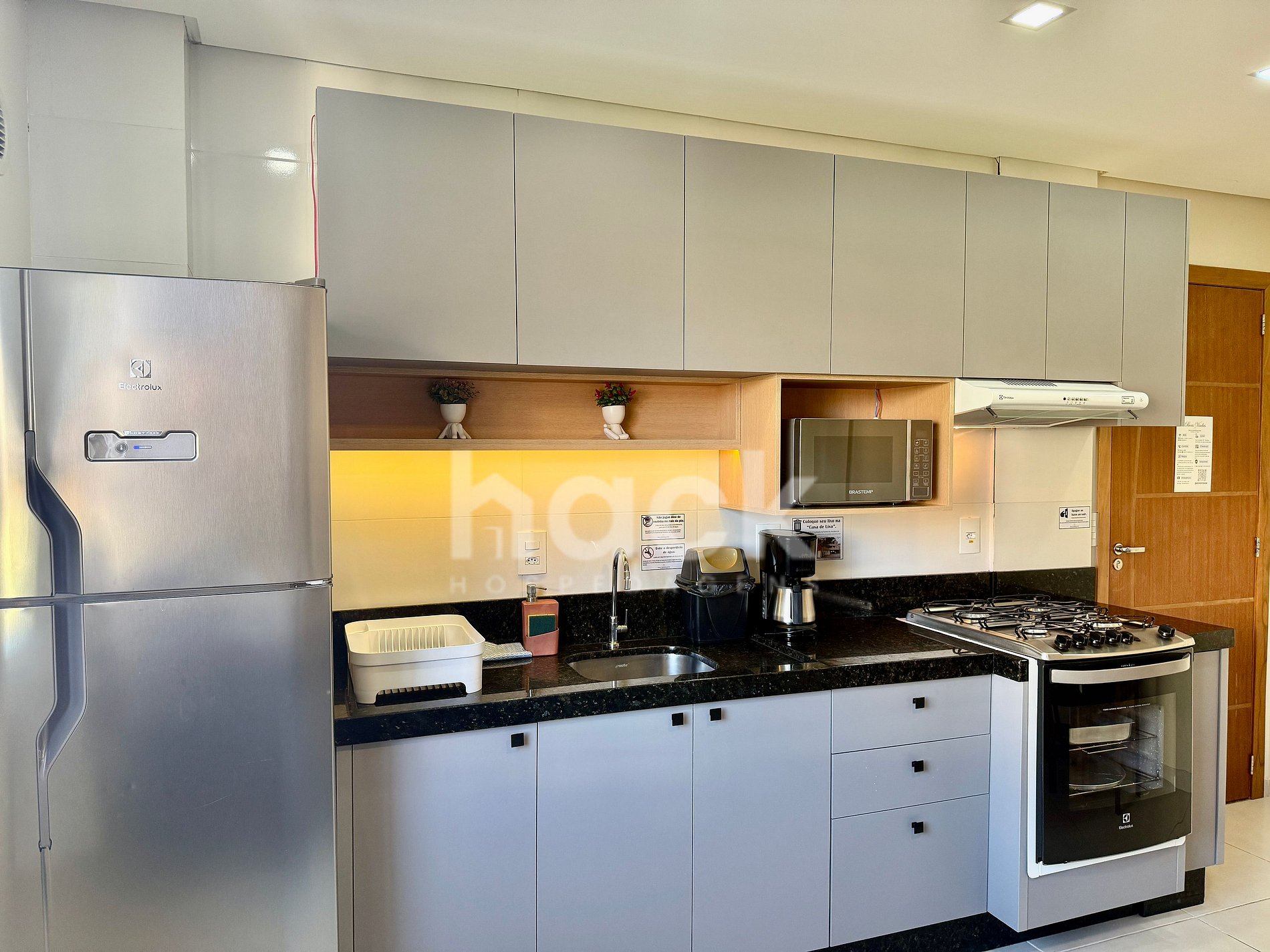 ◘ A cozinha é completa com todos os utensílios para que você possa para preparar as suas refeições como se estivesse em casa. Possui fogão à gás, armário, geladeira, micro-ondas, liquidificador, louças, talheres e panelas. Fornecemos detergente, esponja, perfex e pano de louça para os primeiros dias.