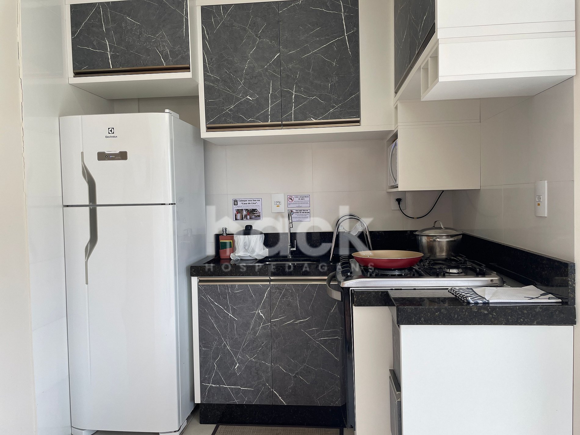 ◘ A cozinha é completa com todos os utensílios para que você possa para preparar as suas refeições como se estivesse em casa. Possui fogão à gás, armário, geladeira, micro-ondas, liquidificador, louças, talheres e panelas. Fornecemos detergente, esponja, perfex e pano de louça para os primeiros dias.
