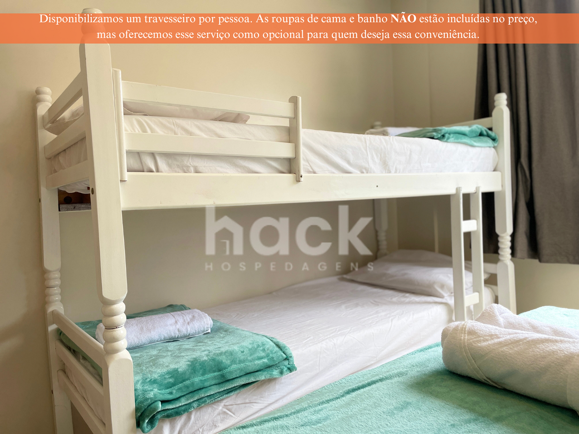 • Lençol, fronha, cobertor e toalhas não estão incluídos no valor da hospedagem. Você pode optar por trazer os seus itens ou alugá-los conosco.