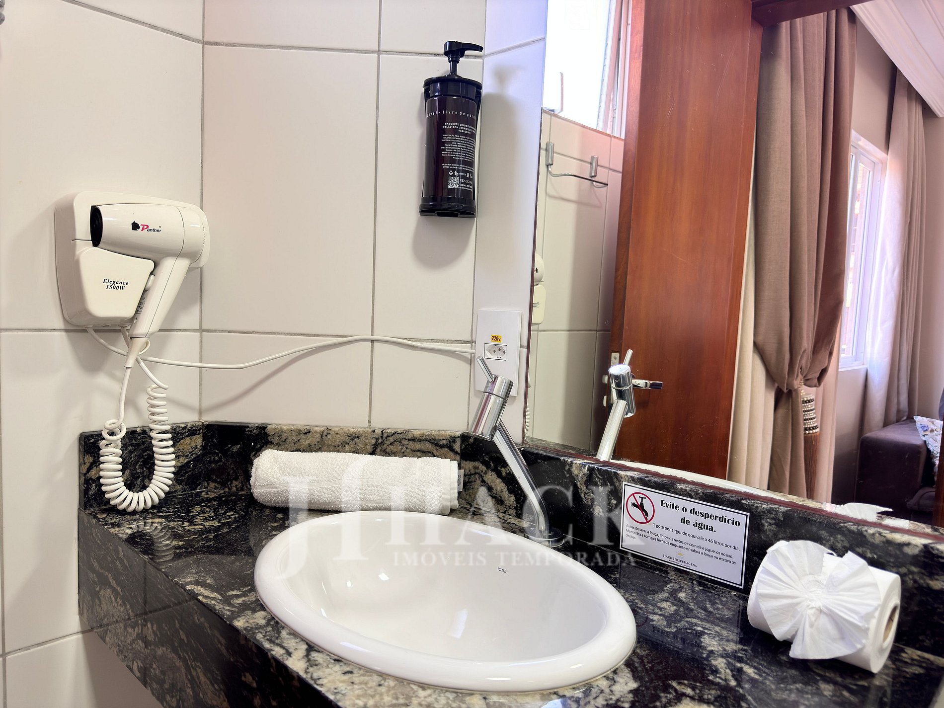 • Os banheiros das suítes são equipados com chuveiros de alta vazão, shampoo e sabonete líquido, assim oferecendo uma experiência relaxante após um dia de praia.