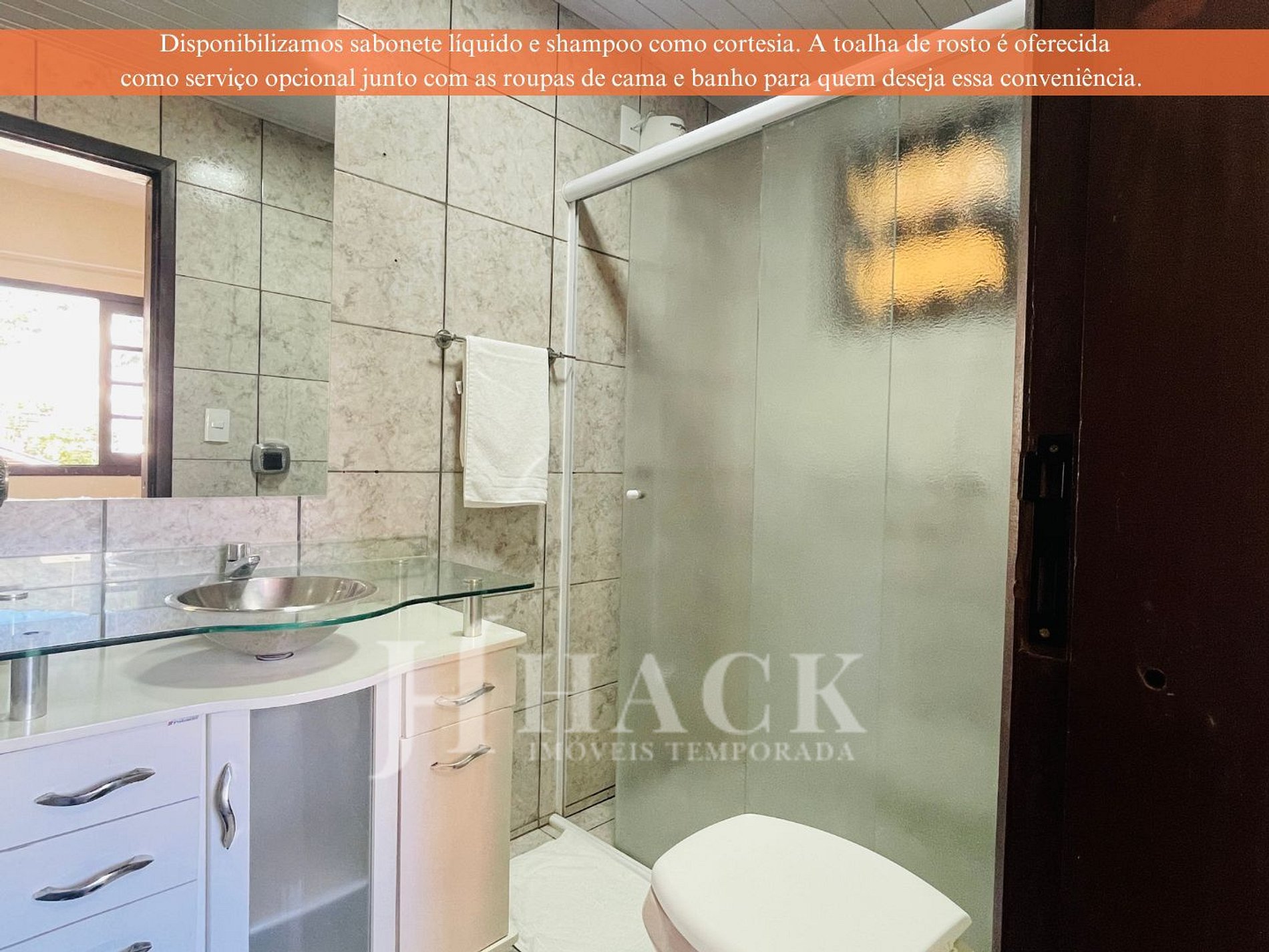 ◘ Os banheiros possuem chuveiros de alta vazão, além de disponibilizarmos shampoo, sabonete líquido e um secador de cabelo. Tudo isso pensando em maior conforto para você.