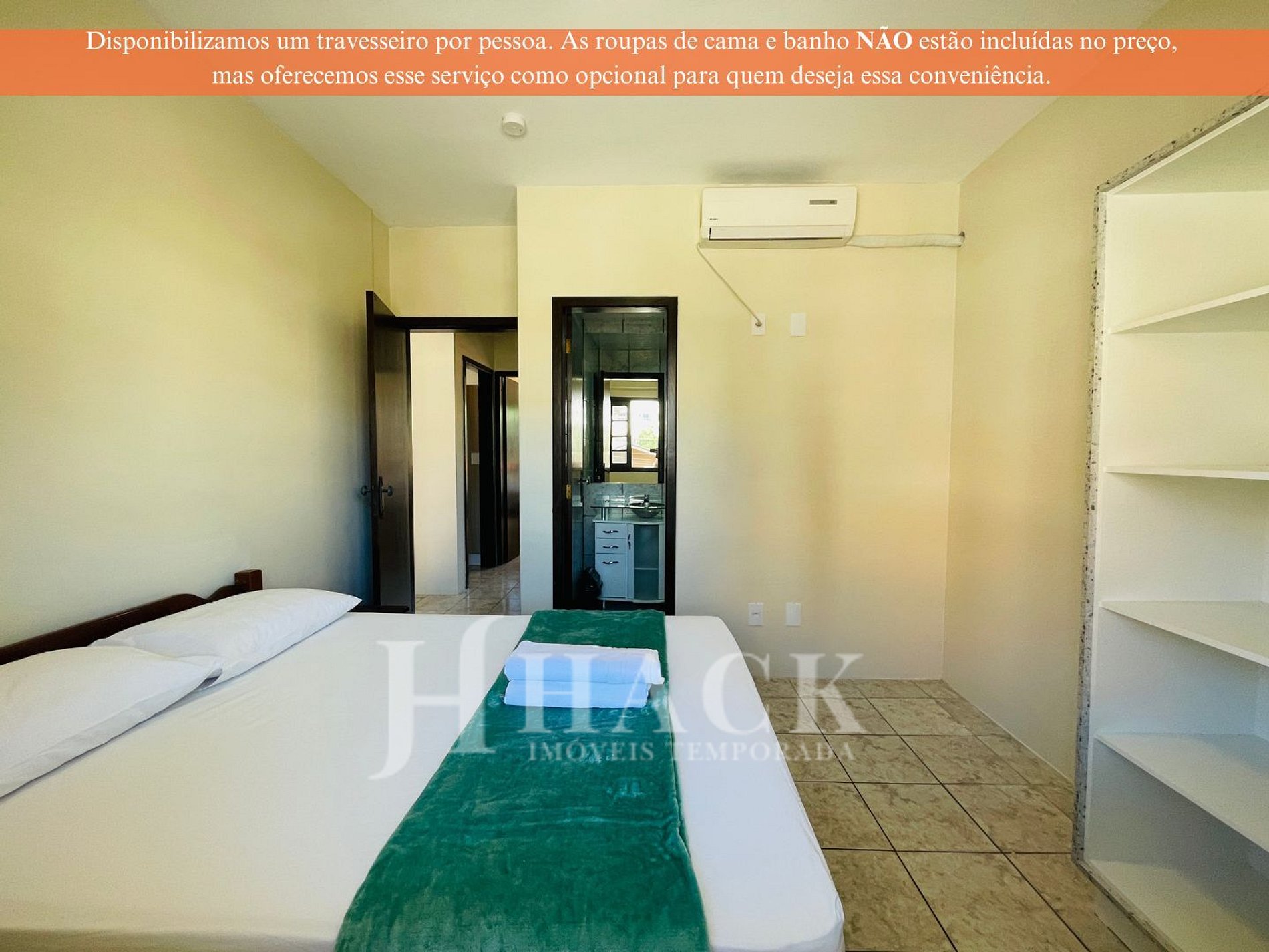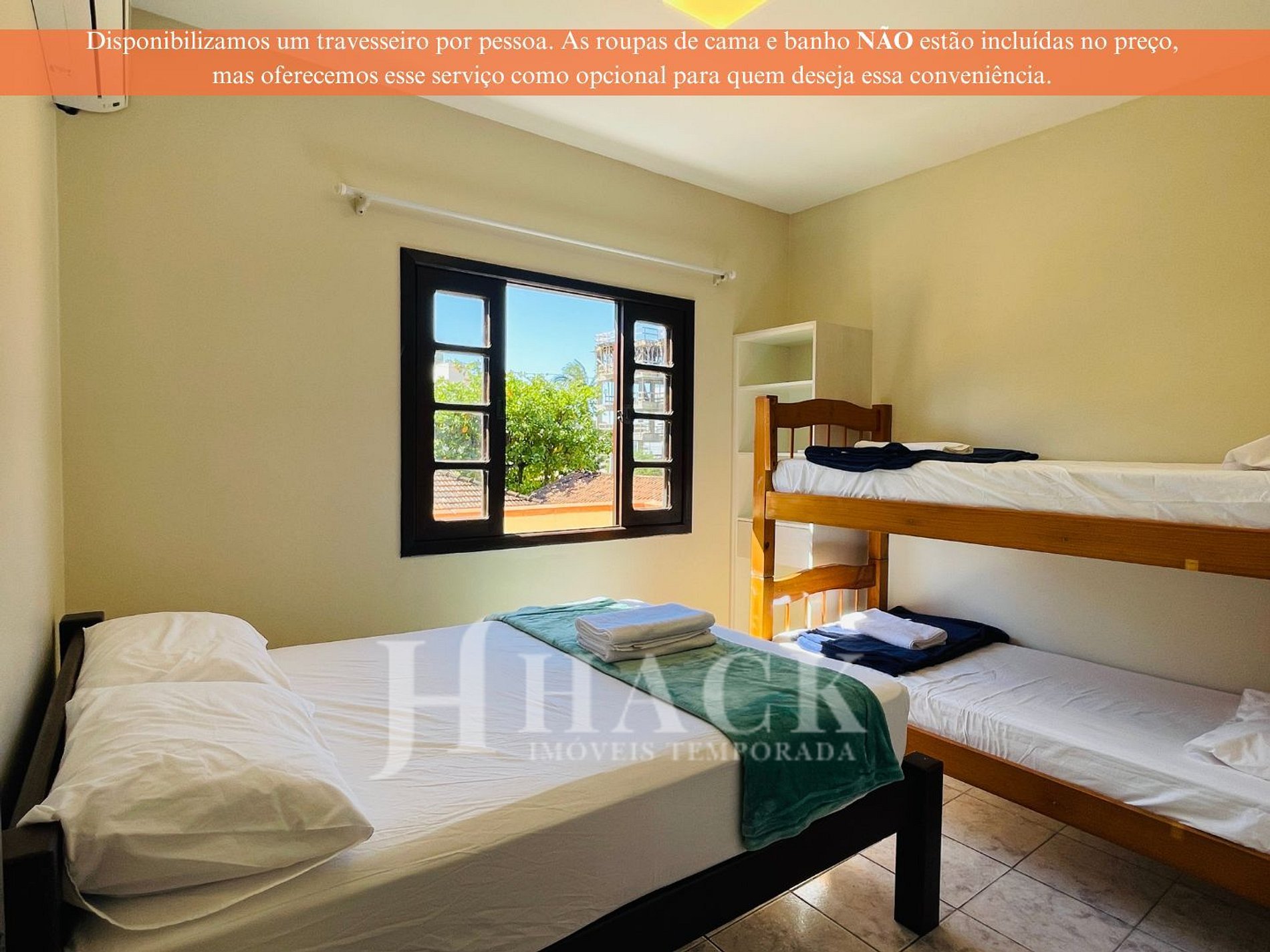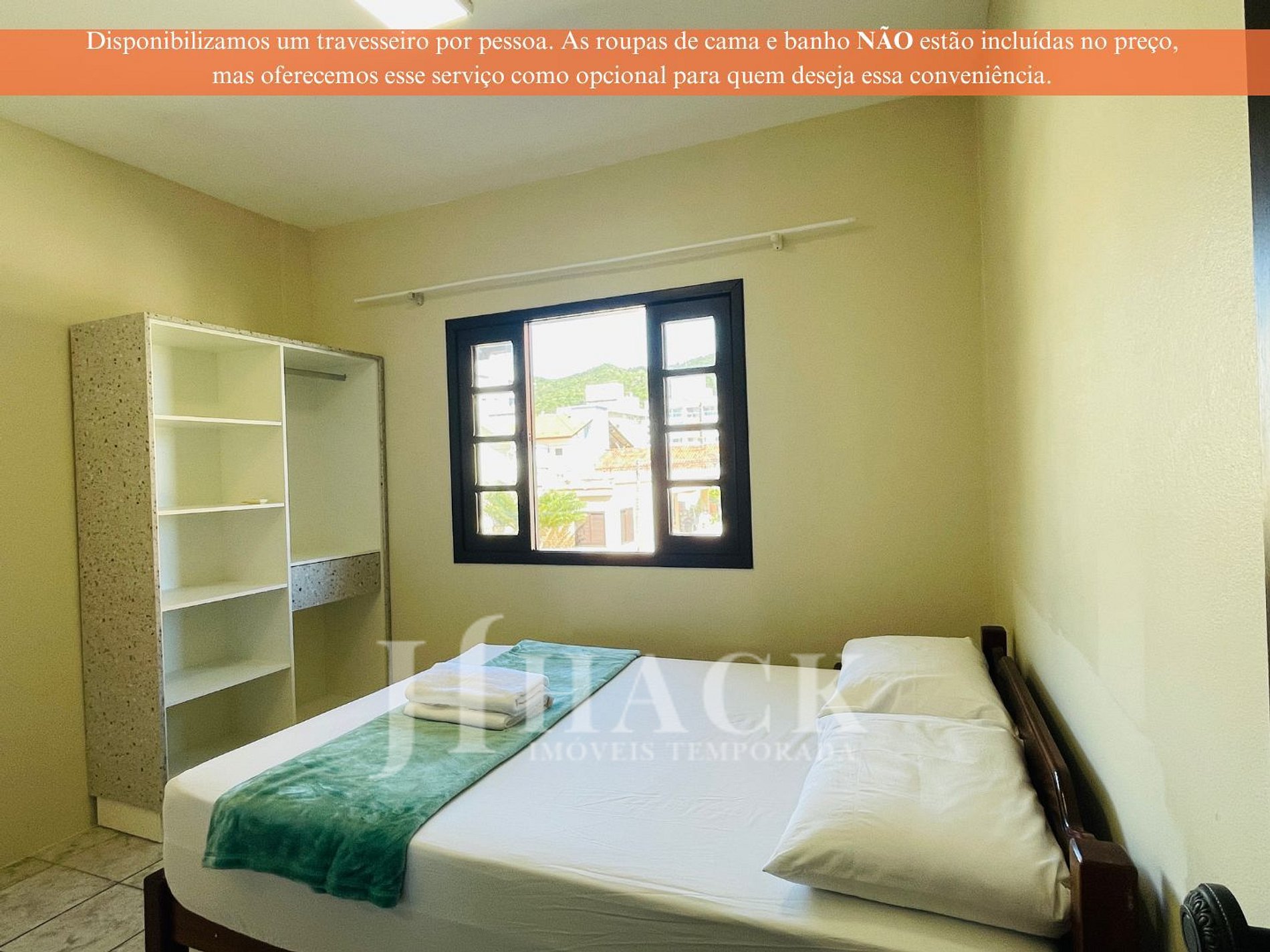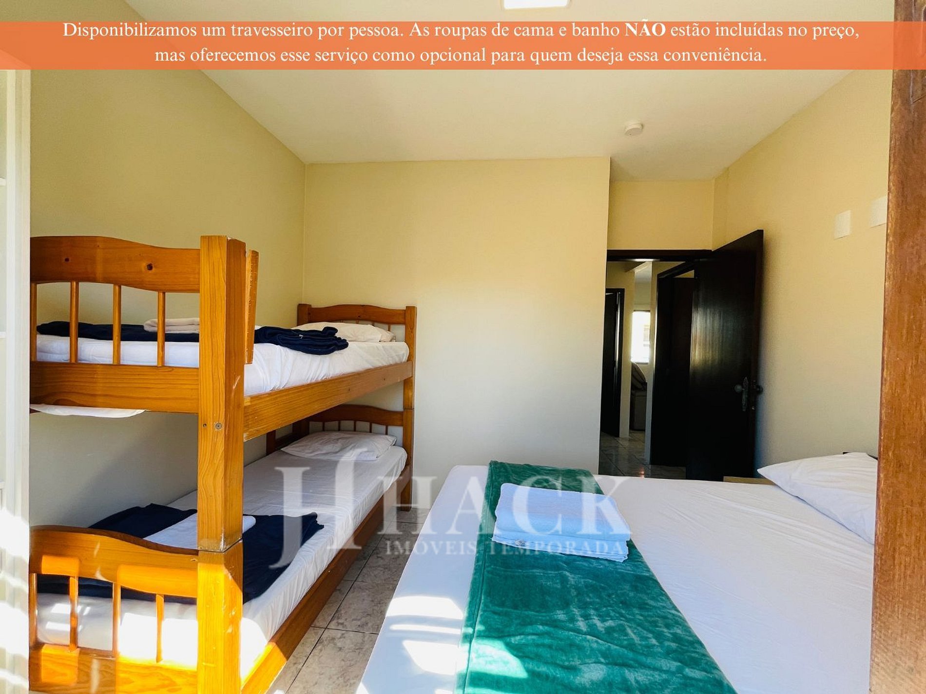 • Lençol, fronha, cobertor e toalhas (banho e de rosto) não estão inclusos no valor da hospedagem, permitindo que você escolha se deseja trazer as suas ou alugá-las.