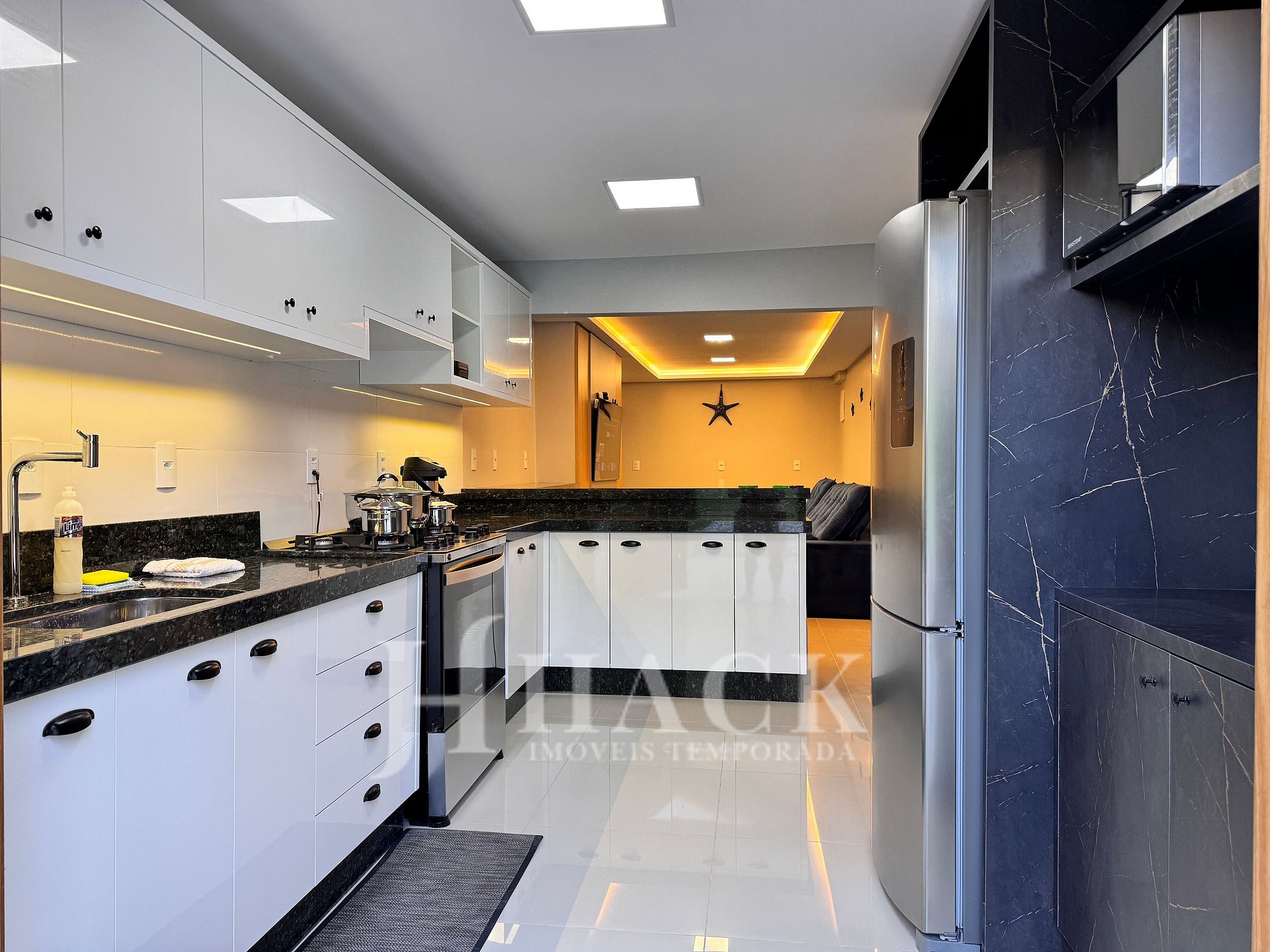 • Cozinha americana completa, equipada com todos os utensílios necessários para preparar suas refeições. Uma elegante bancada com 5 banquetas oferece um espaço descontraído para refeições e bate-papos.